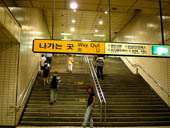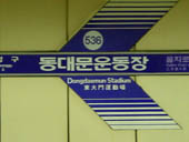 | ホテル最寄りの地下鉄 踏馬駅へと移動し、 5個目の東大門運動場を目指す。 自動改札はTDL入り口とまったく同じグルグルバー方式。 なにげに台湾のそれとは別物です。 着いたらなに食うかなどと腹へりに期待を膨らましていると あっちゅーまに目的駅に到着。 |
