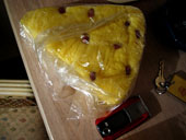 ホテルに着いて熱いシャワーリングをし、 シジョンで1000W(100円)購入した デカ蒸しパンを少しかじってみる。 これぞ究極のボソボソ感!とばかりにウルトラまずい。 しかも付いてる豆 生煮えのピーナッツ。 マジ無理。 |