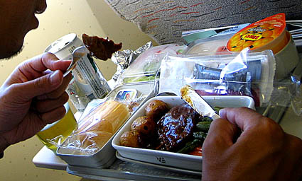| まずは アシアナ航空に乗り込み、ソウル目指してフライトです! 飛び立ってすぐに超俺好みコテーリ機内食 登場! 早速、韓国ビールとともにガブリ寄ります! ああ...うめえええ! |