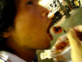 | うーむむ。運動場わきの道はすべて屋台! とにかくものすごい活気! 人の臨場感、ここに極まれり といったトコでしょうか。 |