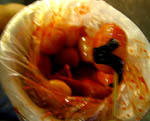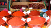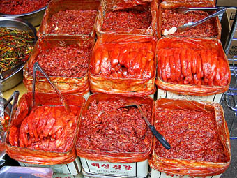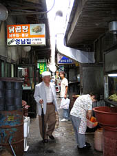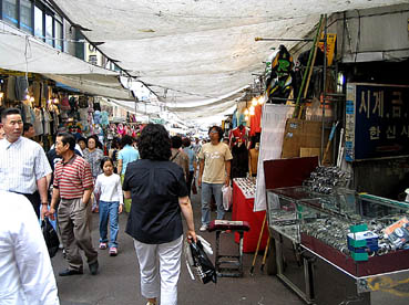 さていよいよ市場に本格突入ってなとこで、 韓国名物の甘辛モチ煮「トッポギ」屋が登場! 迷わず即食い!したんですが....... か か か 辛ぇぇぇぇ〜〜〜〜〜! こんなオヤツ感覚のヤシがこんな辛いってことは メシとかどーーなっちゃうの!!? などと妄想しつつさらに奥へと進んでいくと...... |