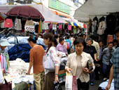 | いよいよソウル最大級の市場 南大門市場(ナンデモンシジョン)へ。 とにかくすげー数の卸用物品。 まさにモノの洪水! 圧倒。 なるほどな。 みんなここで安いの仕入れてんのか。 原宿でうってるグラサンとか500円だし。 いくら見ても飽きそうにないので あえて再び裏路地へと消えるカメール。 |