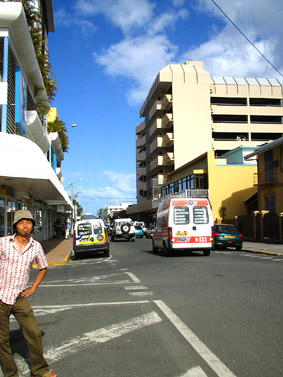 3日目の今日は、 地元雰囲気を味わうにはもってこいな 「朝市」を堪能するべく ホテル前の朝バスに10分揺られて 島一番の街「ヌーメア」へ。 |