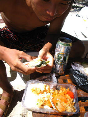 最後の朝も ホテル裏のスーパーで 朝食購入。 ▲スーパームービー 海岸にてカリカリ〆! ほんとうめーのよ マジで。 |