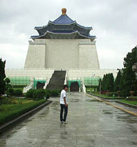 3カ所目はなんか台湾のおエラいさん(蒋介石)のでっかい像がはいってるカクンソン・ビルディングへ。 が しかし、台風警戒の為、入り口封鎖。 ................無念!! |